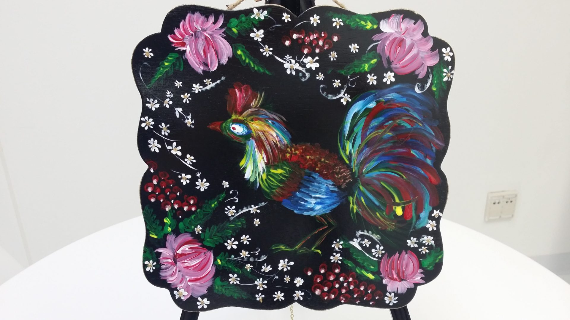 "Rooster" Vintage painting on wooden plates