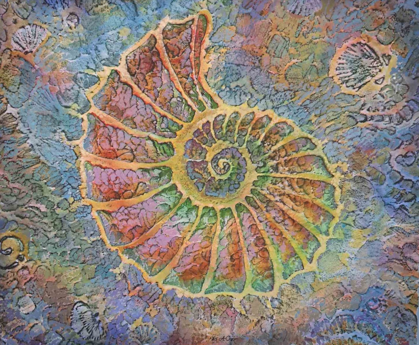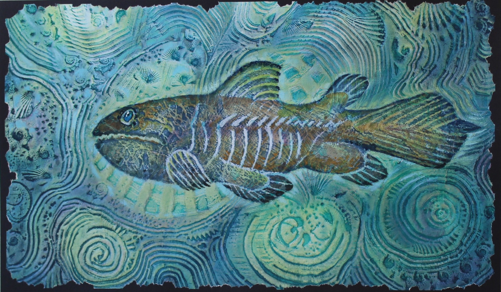 “Relict fish” Artist: Aleksandr Gorelov Paper, mixed technique, watercolor, fluid acrylic. 26’’x29’’ $629