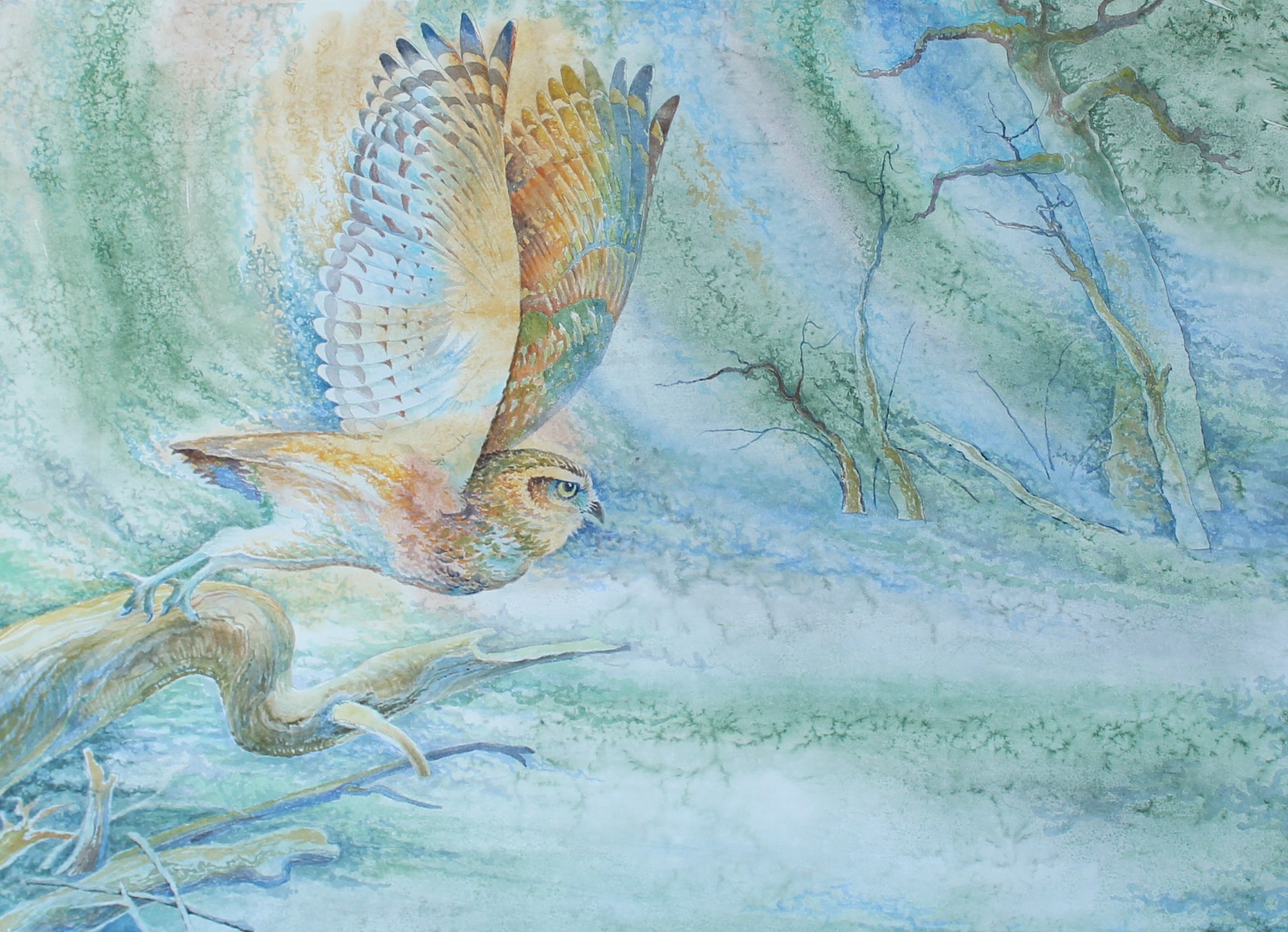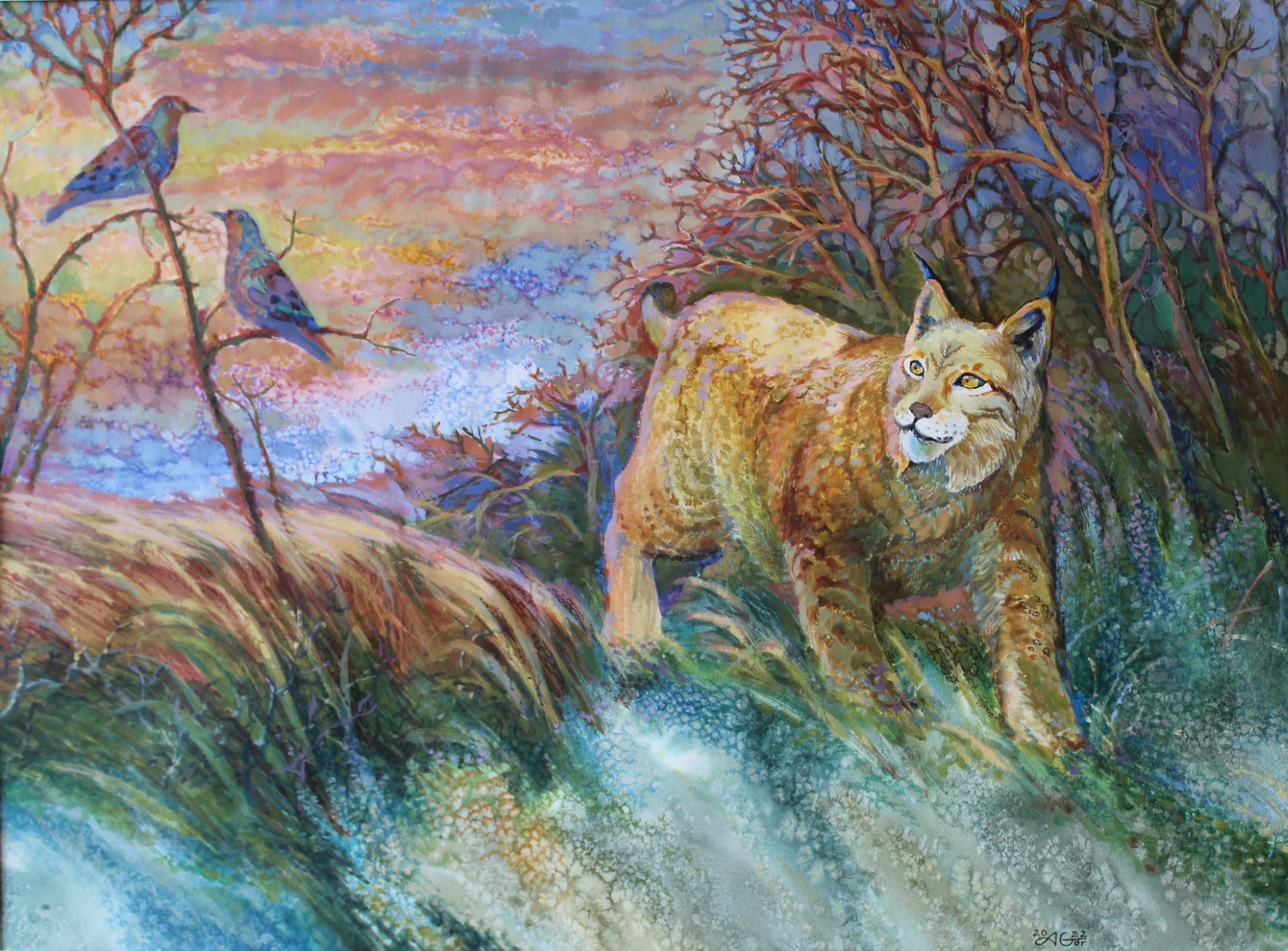 “Dawn” Artist: Aleksandr Gorelov Wooden panel, mixed technique, watercolor, fluid acrylic, fine liner. 36’’x24’’ $867