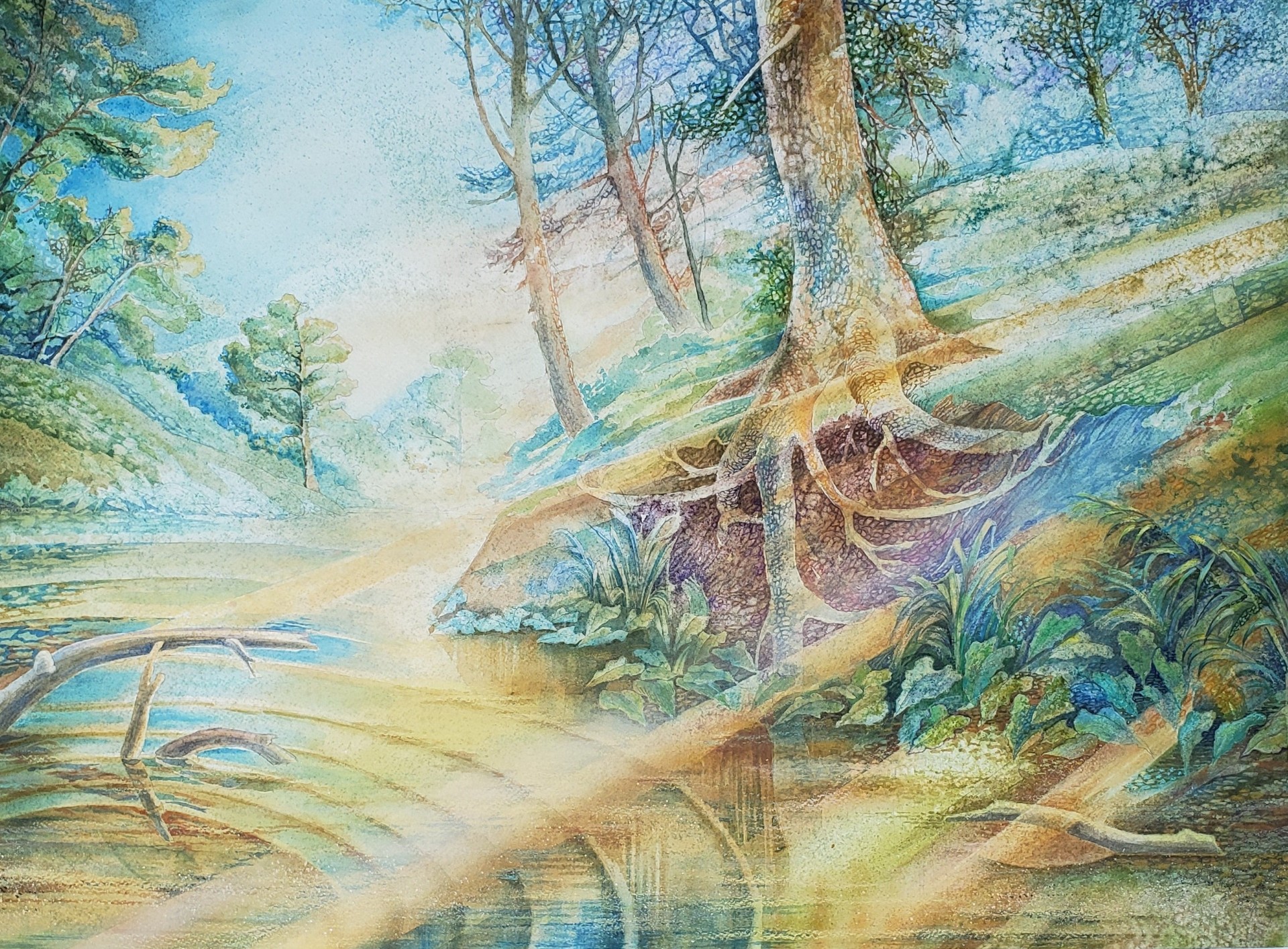 “Сaddo Lake” Artist: Aleksandr Gorelov Paper, mixed technique, watercolor, fluid acrylic. 36’’x38’’ $867