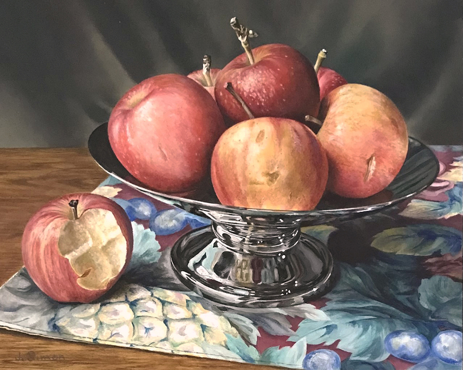 As a career medical illustrator, I have always been a technical, representational artist yet over the years, have developed eclectic tastes in painting subjects and how we traditionally view them. I am drawn to detail and how light and shadow visually affects objects and color within a still life, portrait or landscape, no matter what an-gle. I try to create depth and excitement in a painting by balancing the lights and darks within the colors and the overall composition. My goal is to draw the viewer into a painting and to spend time enjoying that painting.